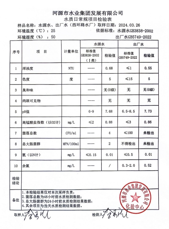2024年3月26日水質(zhì)檢驗(yàn)報(bào)告