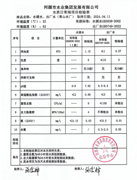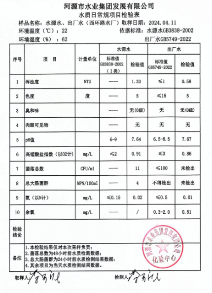 2024年4月11日水質(zhì)檢驗(yàn)報(bào)告