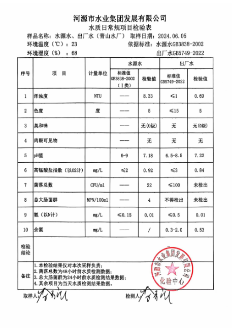 2024年6月5日水質(zhì)檢驗(yàn)報(bào)告 ???