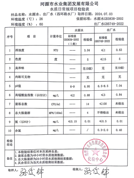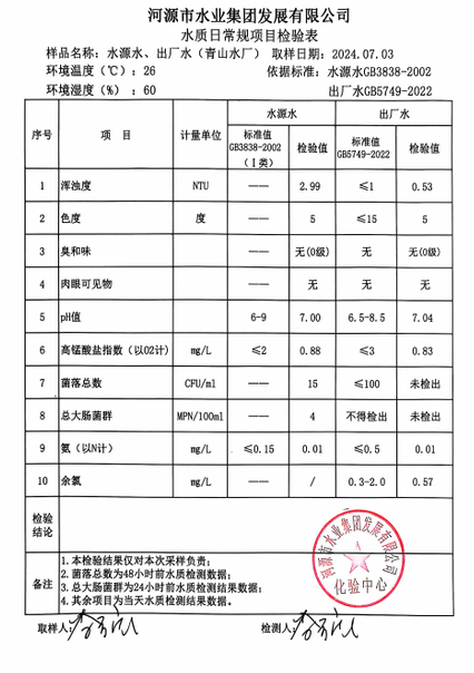 2024年7月3日水質(zhì)檢驗報告