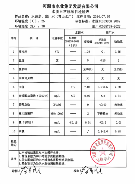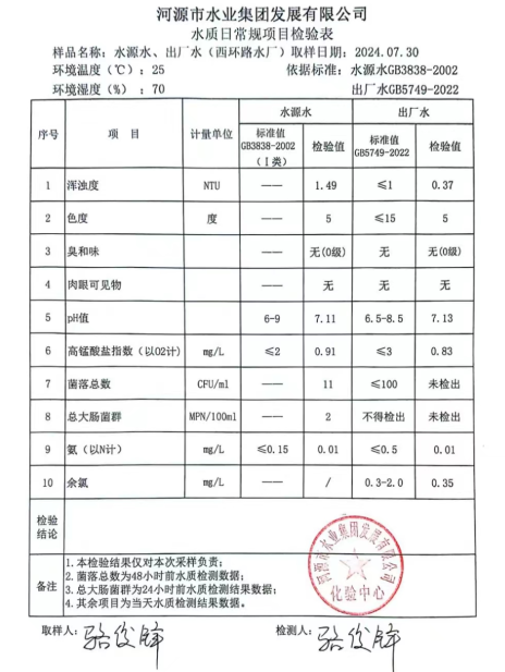 2024年7月30日水質(zhì)檢驗(yàn)報(bào)告