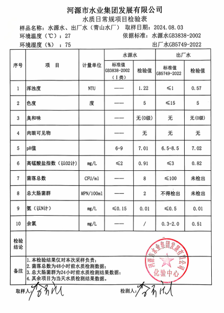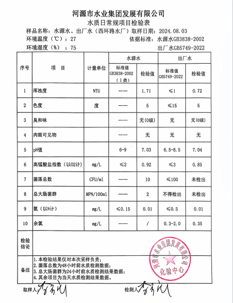 2024年8月3日水質(zhì)檢驗(yàn)報(bào)告