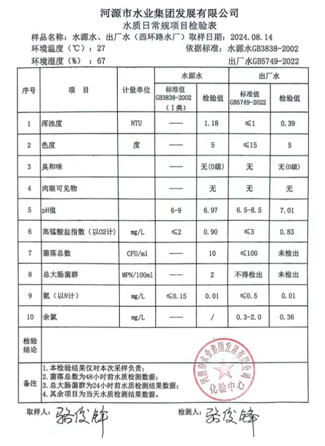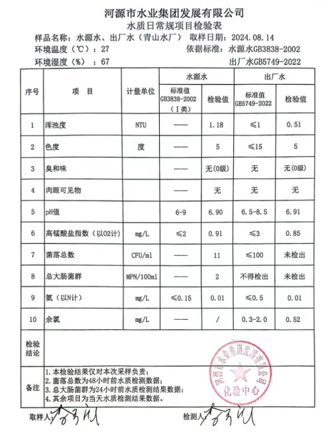 2024年8月14日水質(zhì)檢驗報告
