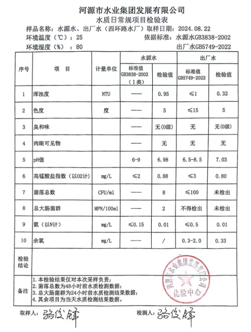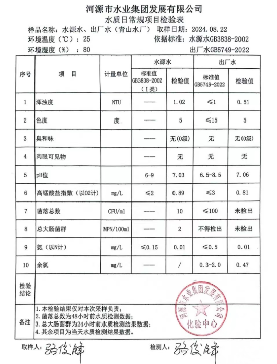 2024年8月22日水質檢驗報告