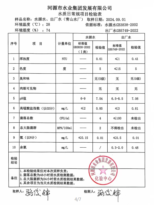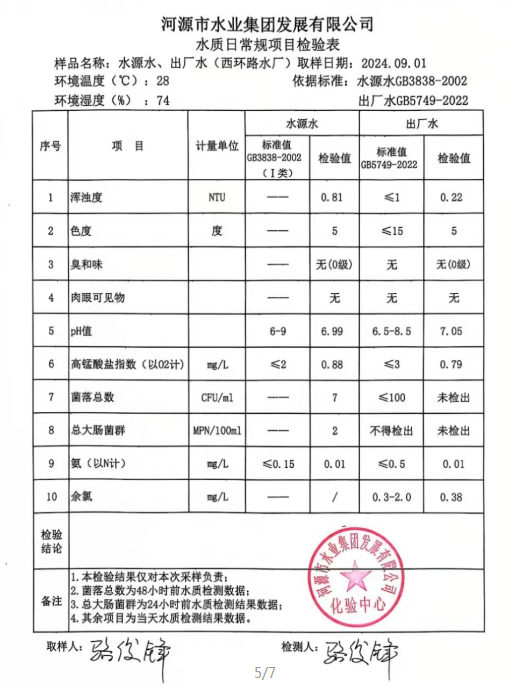2024年9月1日水質(zhì)檢驗(yàn)報(bào)告