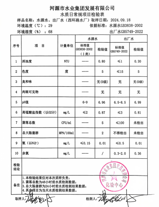 2024年9月18日水質檢驗報告