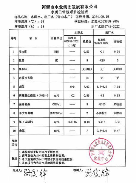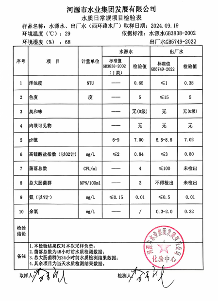 2024年9月19日水質(zhì)檢驗(yàn)報(bào)告