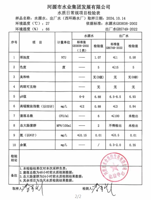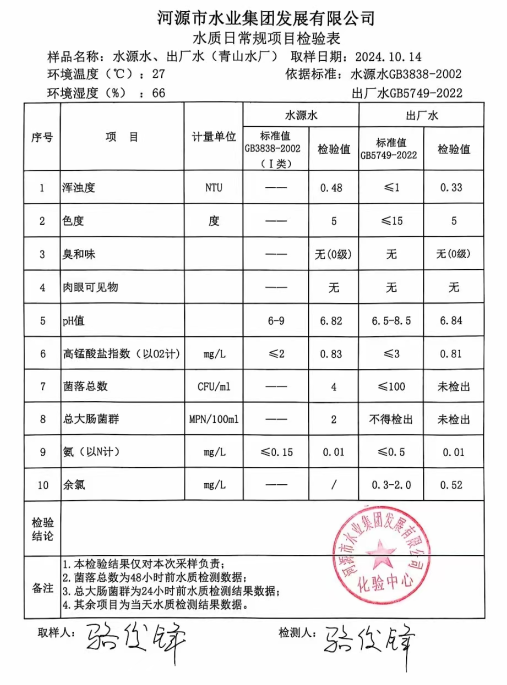 2024年10月14日水質(zhì)檢驗報告