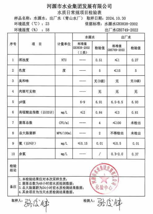 2024年10月30日水質(zhì)檢驗(yàn)報(bào)告